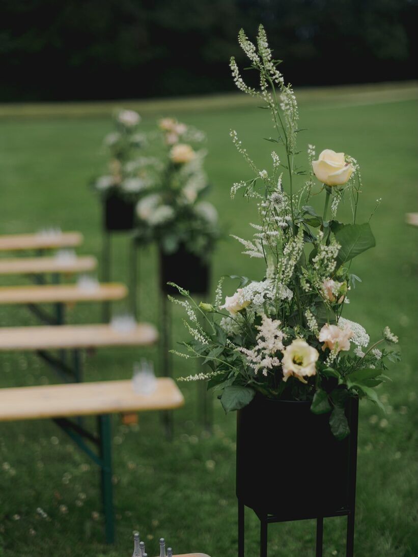 Vi leverer gerne brudebuket og brystbuketter til jer om morgenen – og pynter op i kirken og i festlokalerne, så I bare skal nyde dagen.